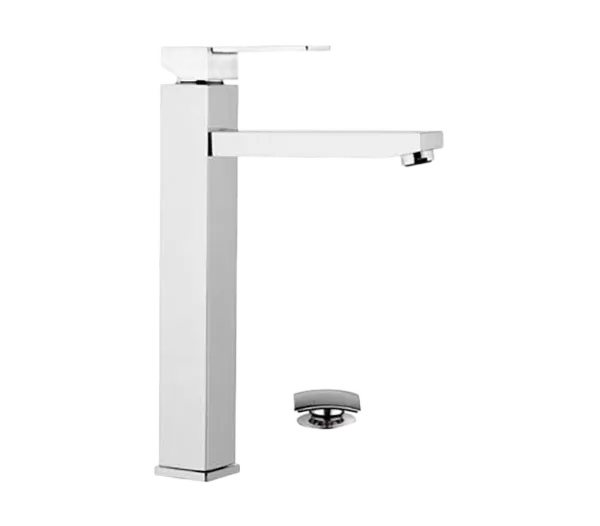 Смеситель для раковины высокий с донным клапаном qubika cr хром remer