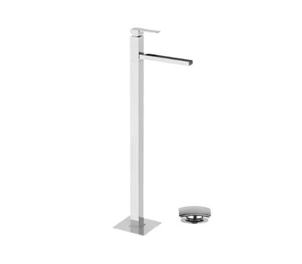 Смеситель для раковины напольный с донным клапаном qubika cascata cr хром remer