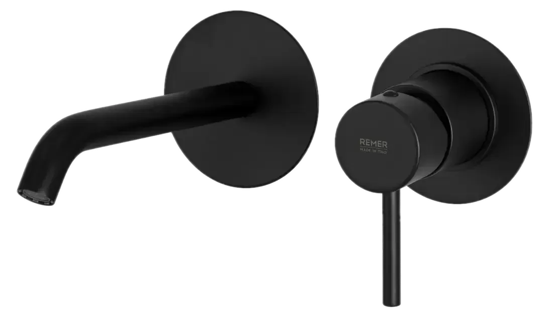 Смеситель для раковины настенный скрытого монтажа излив 16см (скрытая часть в комплекте) x style no черный матовый remer