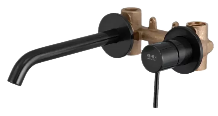 Смеситель для раковины настенный скрытого монтажа излив 16см (скрытая часть в комплекте) x style cfp черный хром брашированный remer