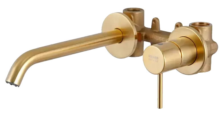 Смеситель для раковины настенный скрытого монтажа REMER X Style X15PBG в цвете "золото брашированное" – это современное решение для вашей ванной комнаты. Этот смеситель сочетает в себе элегантный дизайн и функциональность, обеспечивая комфортное использование и экономя пространство на раковине. В комплекте идет скрытая часть, что упрощает монтаж и обеспечивает эстетичный внешний вид.