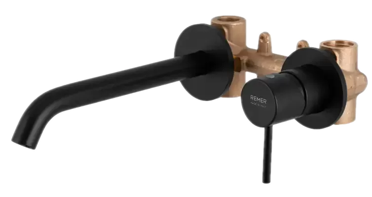 Смеситель для раковины настенный скрытого монтажа излив 19см (скрытая часть в комплекте) x style no черный матовый remer