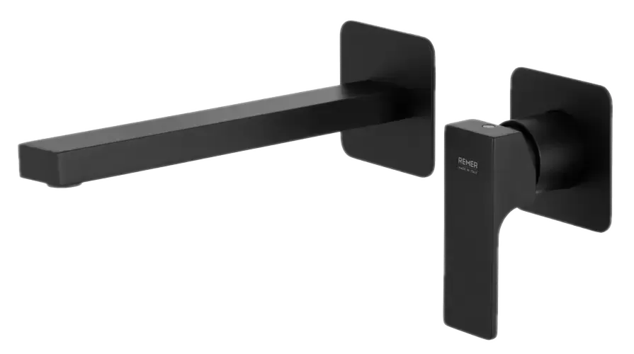 Смеситель для раковины настенный скрытого монтажа излив 23см (скрытая часть в комплекте) absolute no черный матовый remer