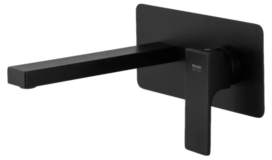 Смеситель для раковины настенный скрытого монтажа излив 23см (скрытая часть в комплекте) absolute no черный матовый remer