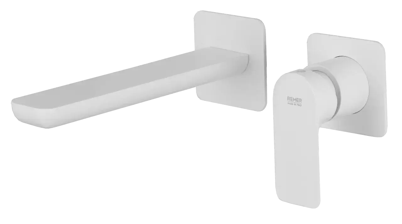 Смеситель для раковины настенный скрытого монтажа излив 23см (скрытая часть в комплекте) infinity bo белый матовый remer