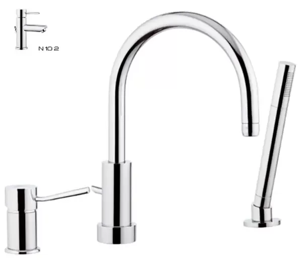Cмеситель для ванны монтаж на борт с душевым набором 2 тип ручки (на 3 отверстия) minimal xv никелированная сталь remer