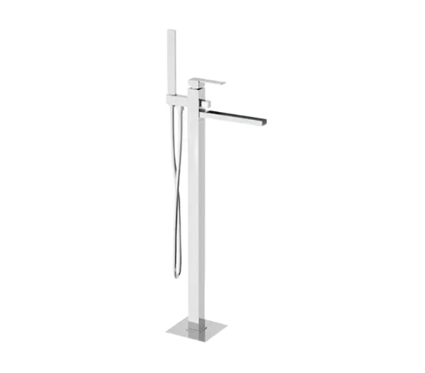 Напольный каскадный смеситель для ванны REMER Qubika Cascata CR (артикул QC08) в цвете хром – это современное решение для вашей ванной комнаты. Этот смеситель сочетает в себе элегантный дизайн и функциональность, обеспечивая комфортное использование. В комплекте идет душевой набор и скрытая часть для монтажа, что упрощает установку и обеспечивает эстетичный внешний вид.